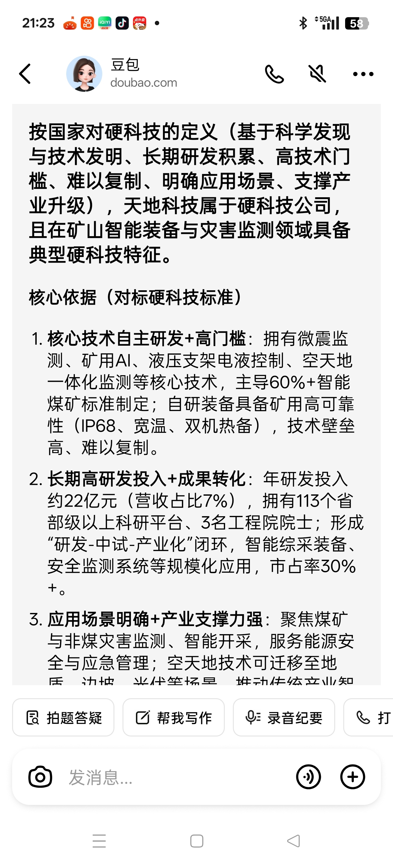 天地科技毕竟也是一家硬科技公司,虽然不是当下热门赛道,股价严重低估。