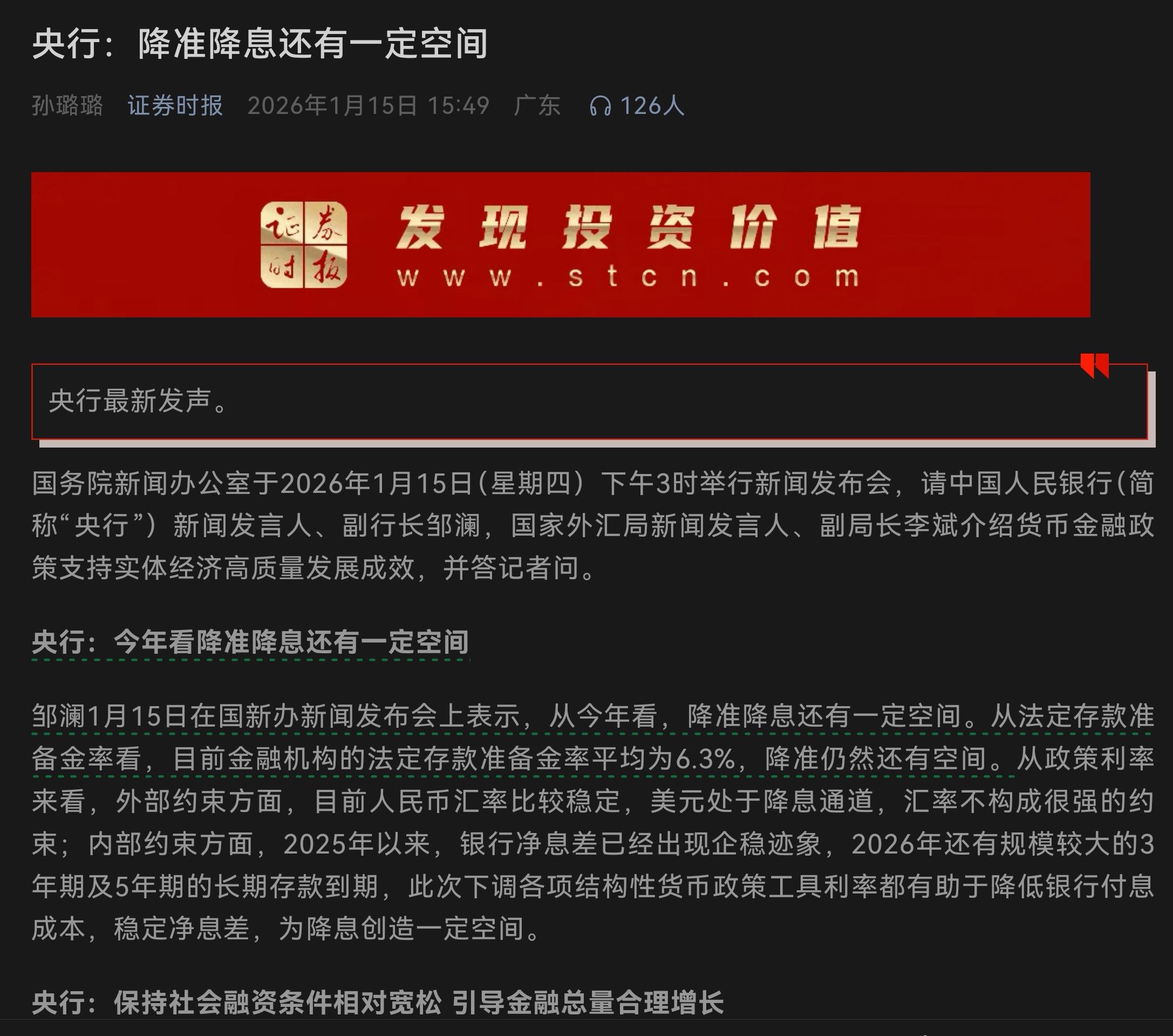 上面降准降息活跃市场,天地百亿存银行不思进取,政策面支撑做多,26年5000点见…