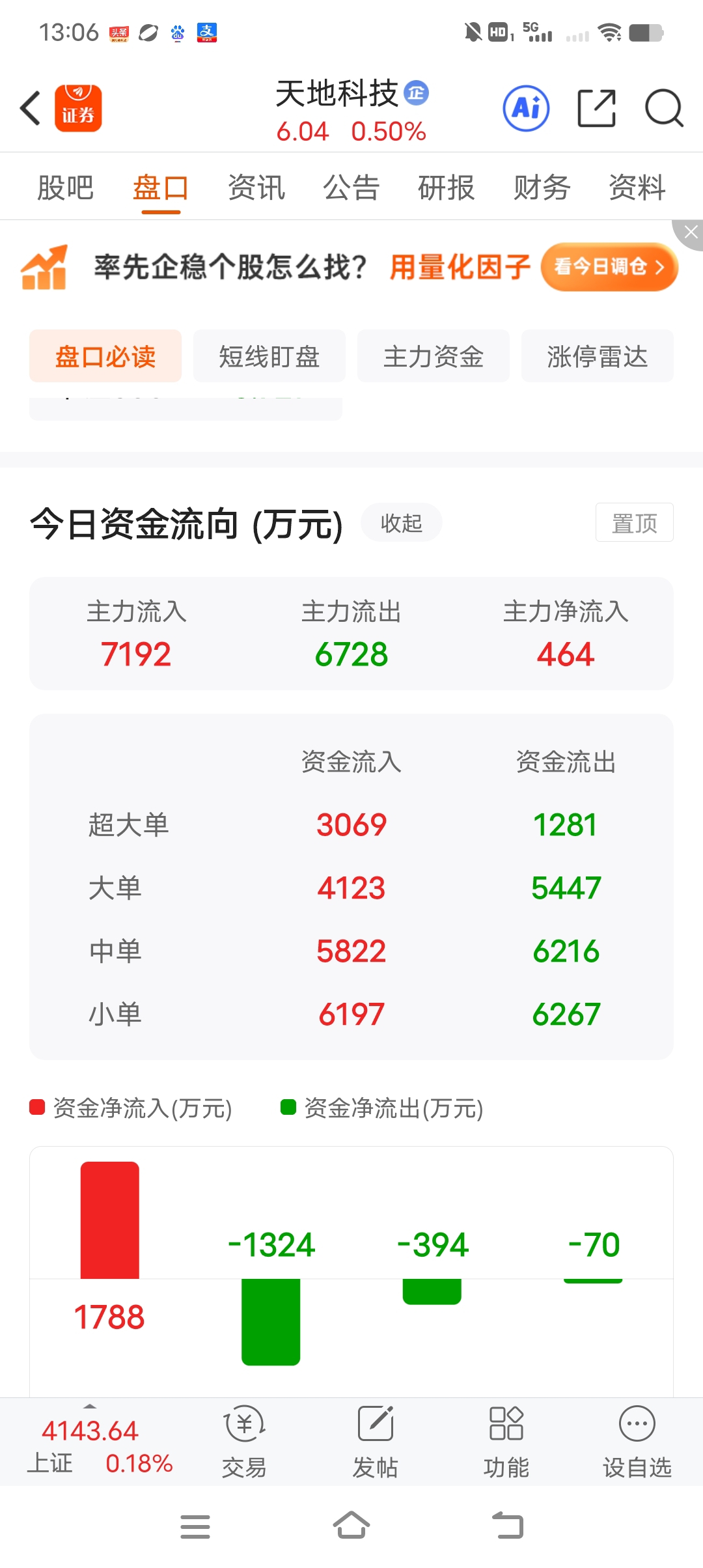 量化资金是空方主力,看样子,今天主力应该会消化掉这些资金!继续持筹,下一高地6.