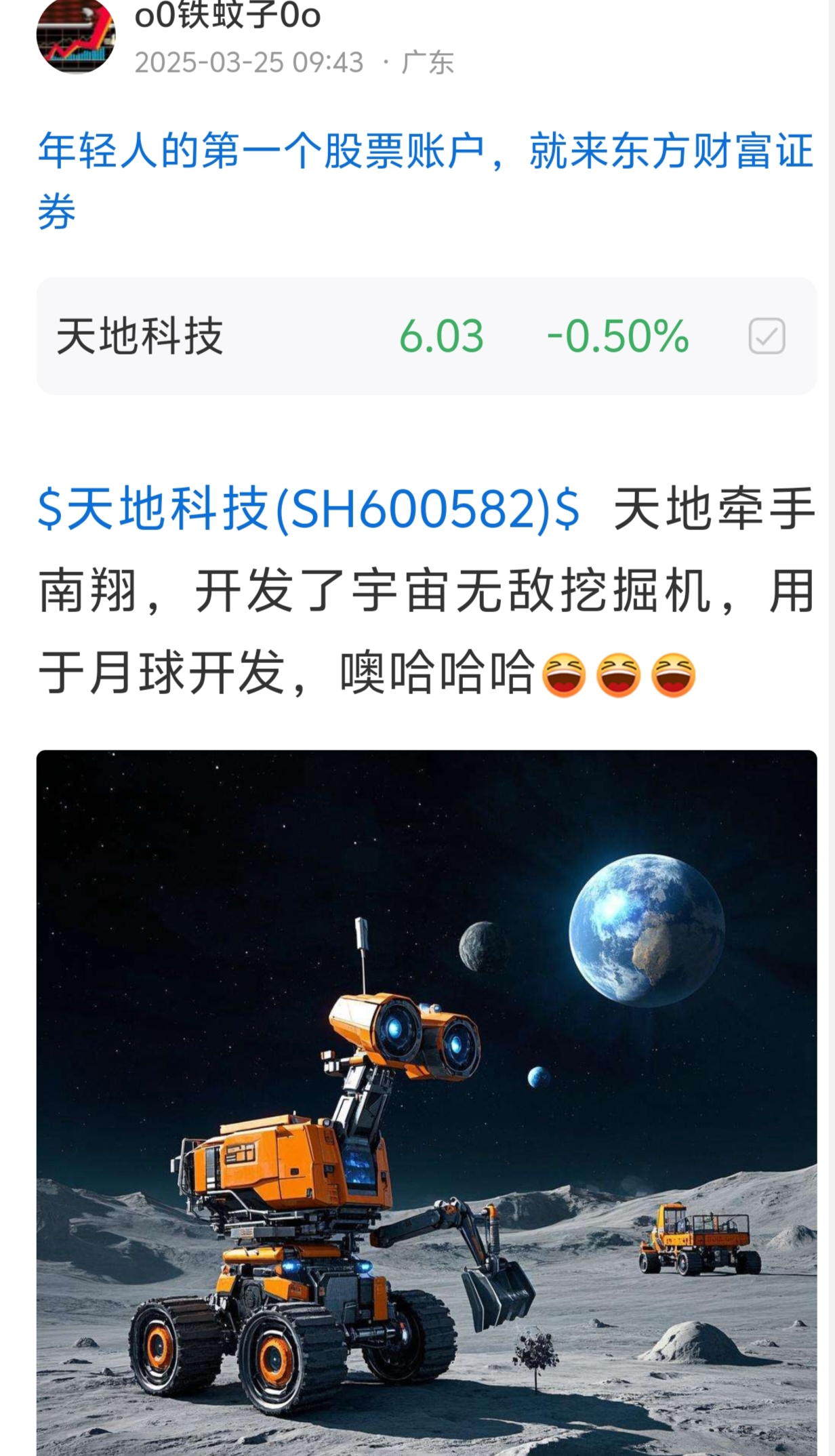 $天地科技(SH600582)$ 太空挖矿技术天地年初早就有了