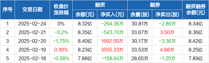 海油工程:融资净偿还264.36万元,融资余额8.32亿元(02-24)