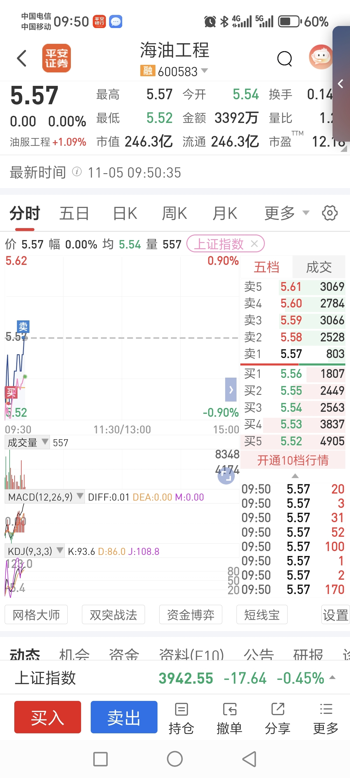 $海油工程(SH600583)$ 这种低开的行情最好做T了,先弄4分,看看情况