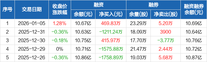 海油工程:融资净买入469.83万元,融资余额10.67亿元(01-05)