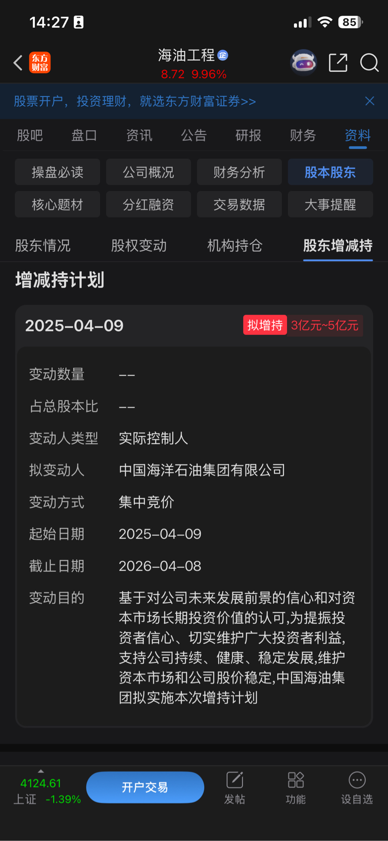 $海油工程(SH600583)$ 4月8日之前,大股东必须增持3-5亿,否则就是违约
