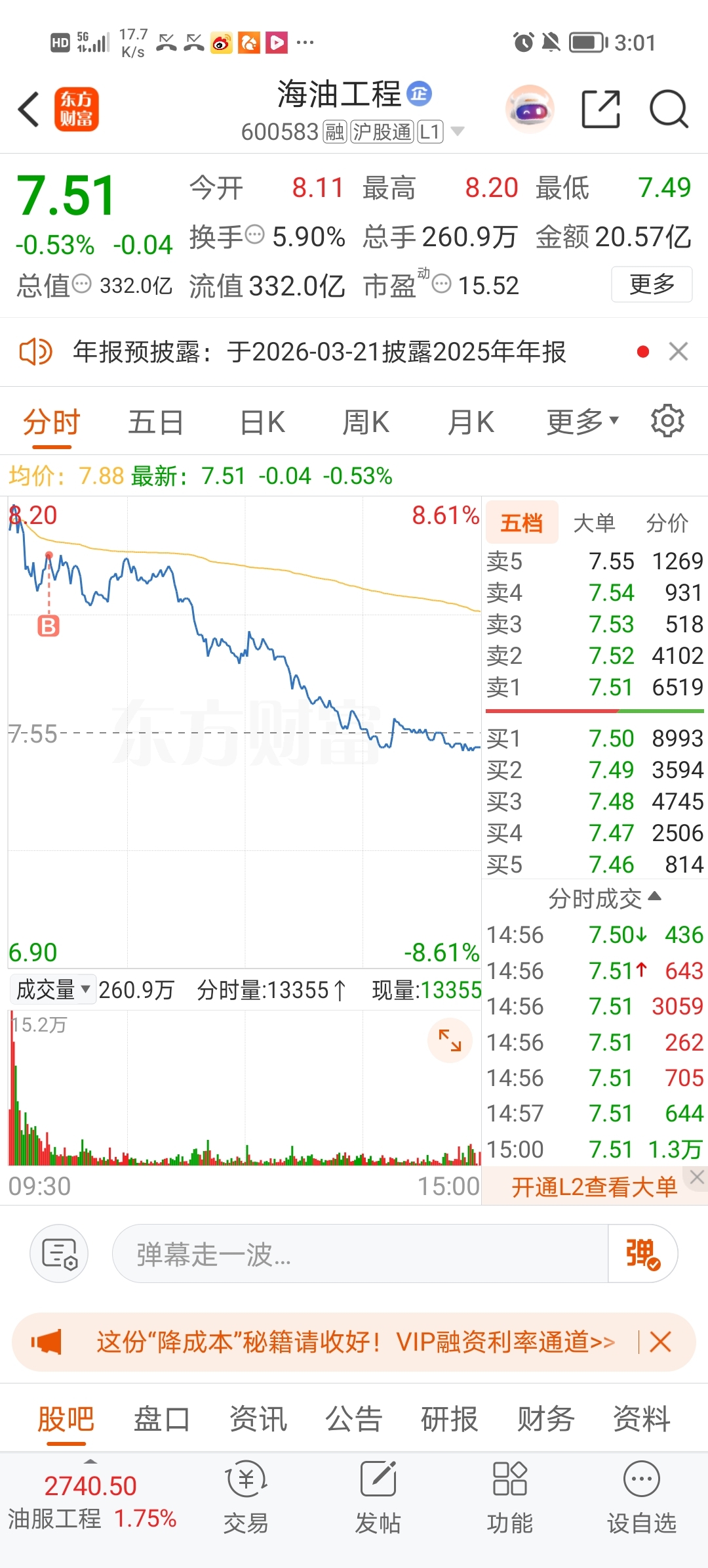 $海油工程(SH600583)$ 怎么回事,七个点没了