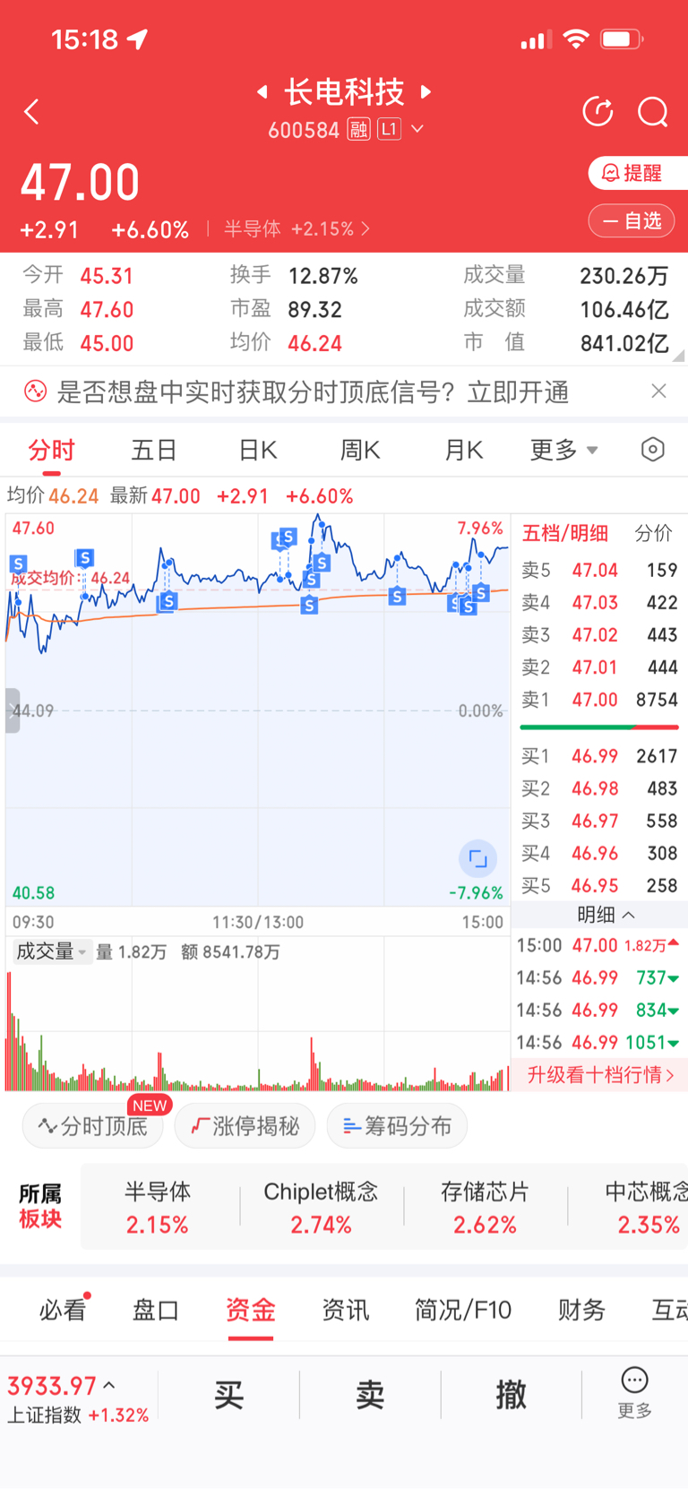 $长电科技(SH600584)$ 等一天都不涨停!全部清了!