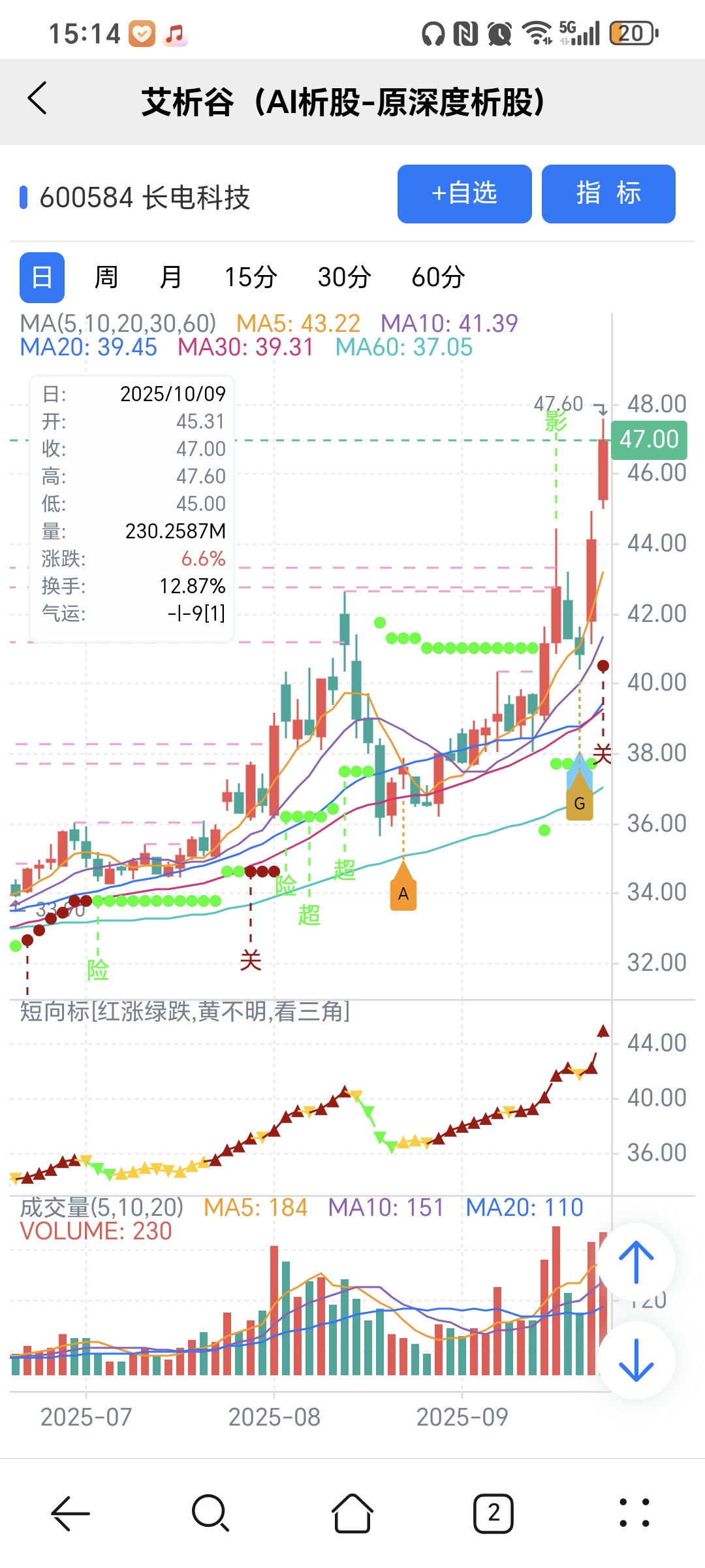 图中A、B、G 关注标记是对应AI选股模型当天下午2点多给出。