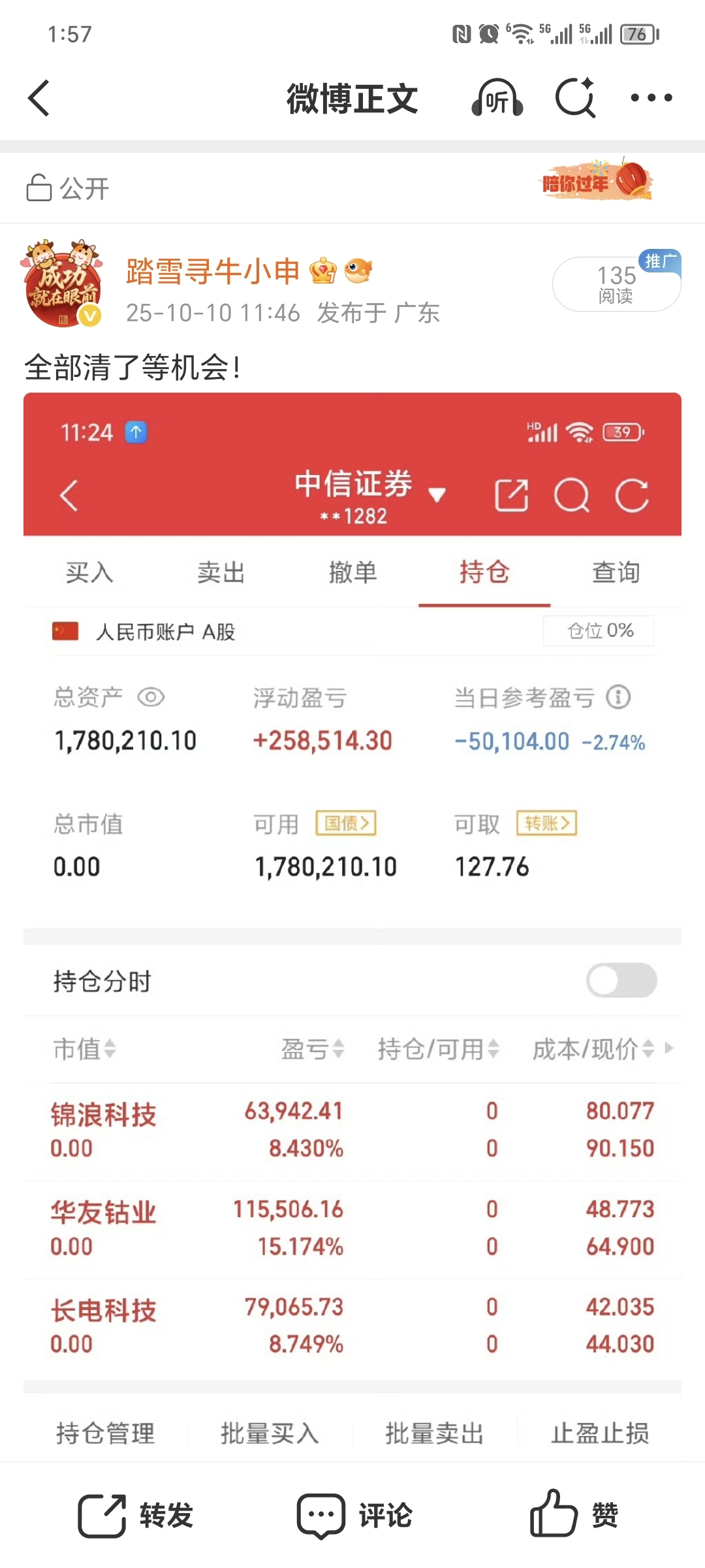 $长电科技(SH600584)$ 还好今天开盘就清了!