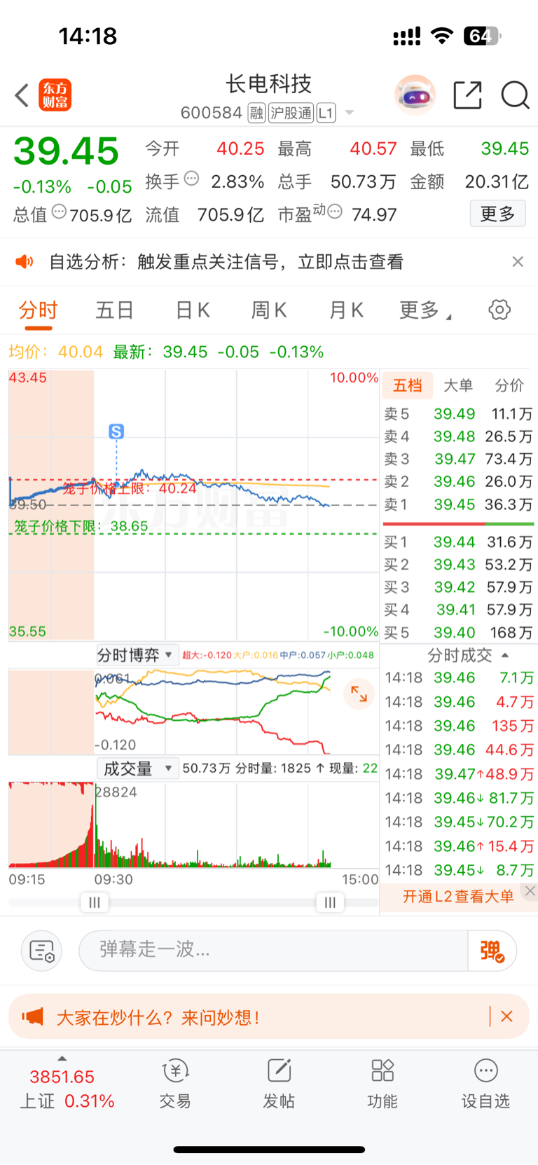 $长电科技(SH600584)$ 还好上午卖了,不然又吃面