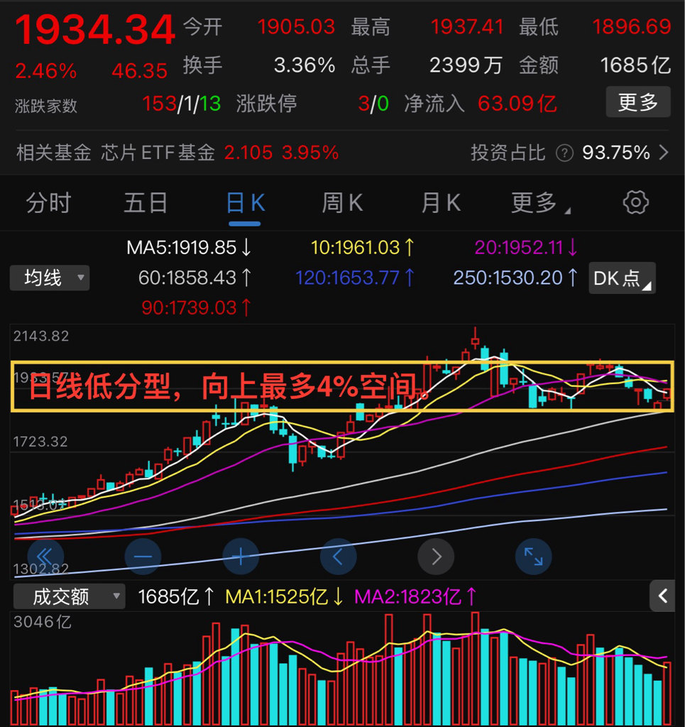 聊完了大盘,我再聊聊半导体,因为科技一直是我关注的焦点,所以不管到什么时候,我都会跟踪到底。我在上午的文章里说过,半导体此番行情属于反抽,向上空间有限,个人预测点位在2000点,最多还有4个点的涨幅,且这是理想化的推测,如果达不到也很正常。不过从今天的板块表现来看,我认为还是有点差强人意,除了上午盘的那一波拉升外,大部分时间都在走高位震荡,不排除主力进一步出逃的可能性。要验证我的观点也不难,明日走势即可揭晓答案,即如果明日大盘收小阴小阳或平盘附近震荡,而半导体跌超1%,那该观点就成立。