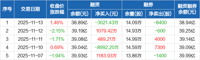 长电科技:融资净偿还3021.43万元,融资余额38.89亿元(11-13)