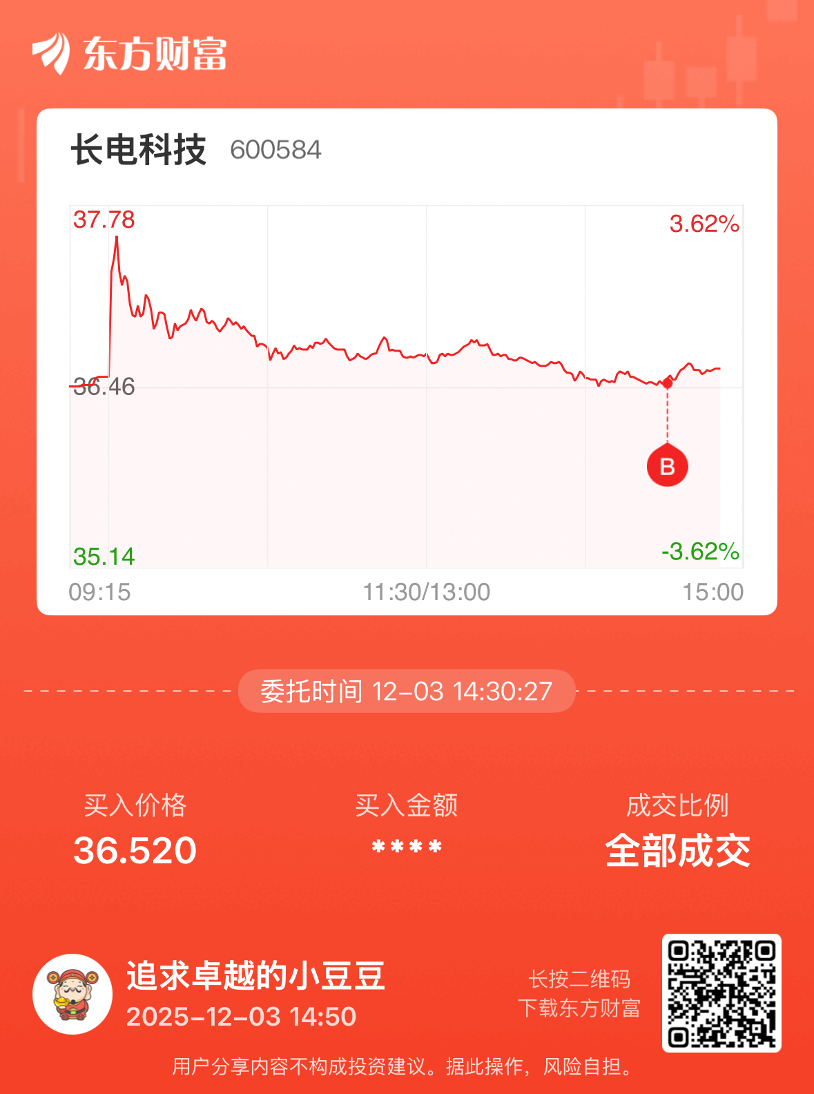 温馨提示: 1.根据《证券法》规定,禁止编造、传播虚假信息或者误导性信息,扰乱证券市场;2.用户在本社区发表的所有资料、言论等仅代表个人观点,与本网站立场无关,不对您构成任何投资建议。用户应基于自己的独立判断,自行决定证券投资并承担相应风险。《东方财富社区管理规定》