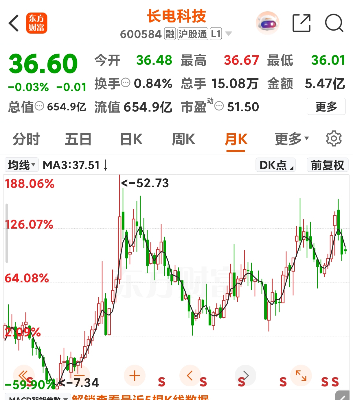 我是做短线的无所谓,倒是我该提醒一下长期持有的朋友,这个股是有周期的,每年十月份稳定机构减持,因为它给这个消费品和终端代工的,一般是电子新品投料都是2月到10月,所以长期看好的我建议您保持理性,去看它的月线,雷打不动的一个大周期$长电科技(SH600584)$