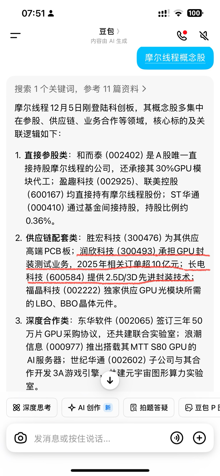 今日摩尔线程开门营业是全市场的焦点,大涨时多少能带一带摩尔供应链的三哥长电,目前