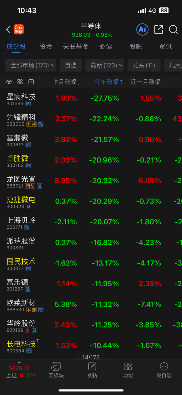 $长电科技(SH600584)$ 173个半导体,倒数13,这不是妥妥的lj股特征吗。什么都跑不赢。买个ETF都跑赢30多个点,今年看跌30个点。
