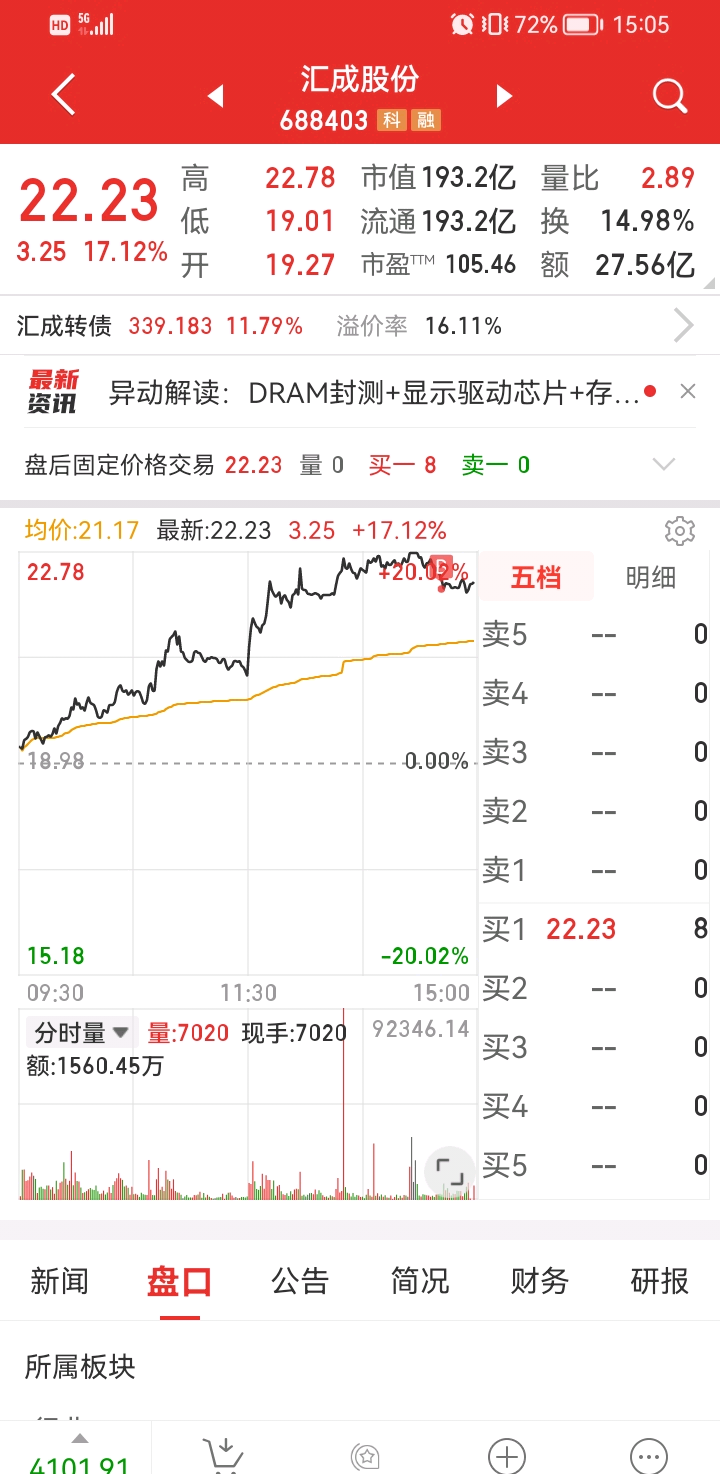 人气第一了,半导体新龙头,周五买不进了就去了汇成,周一跟风涨10个点就可以了,要求不高