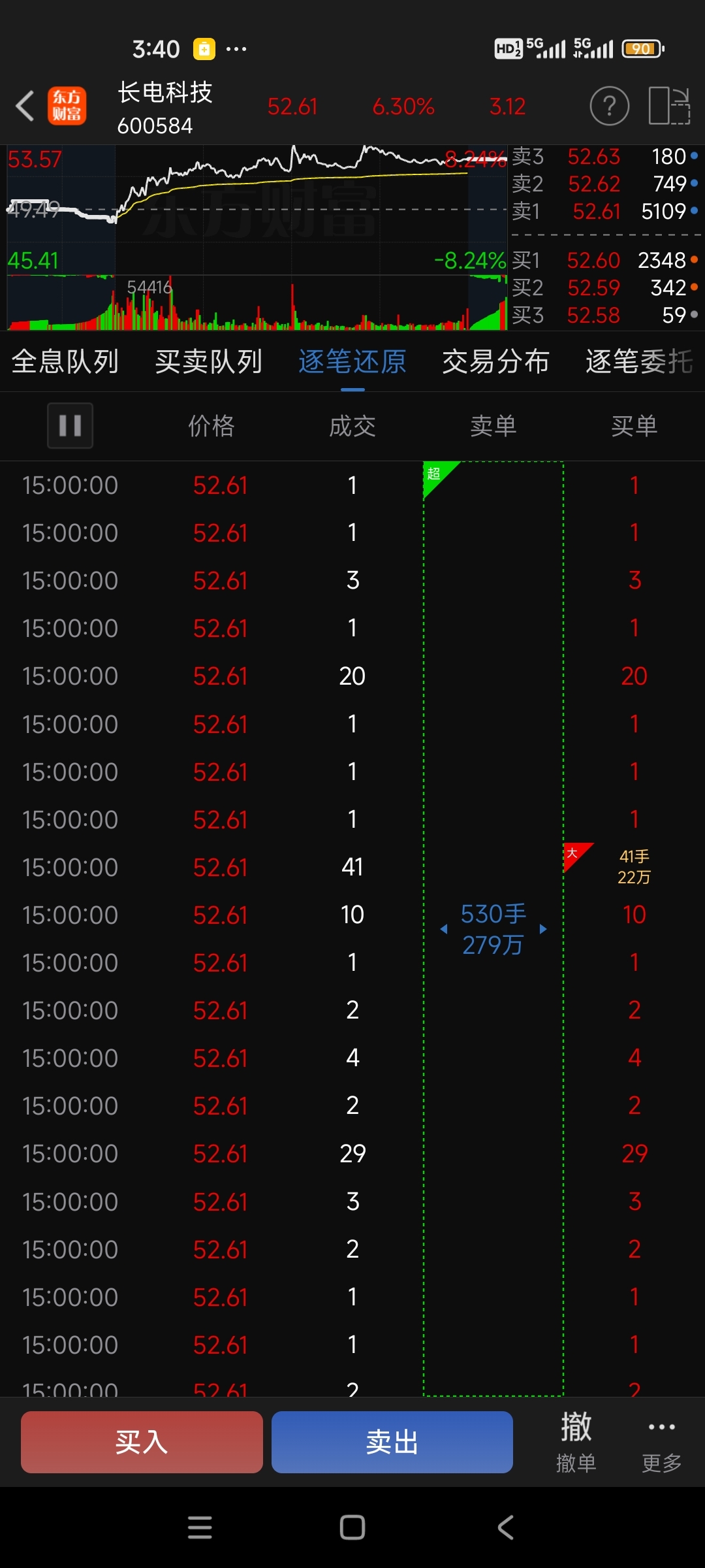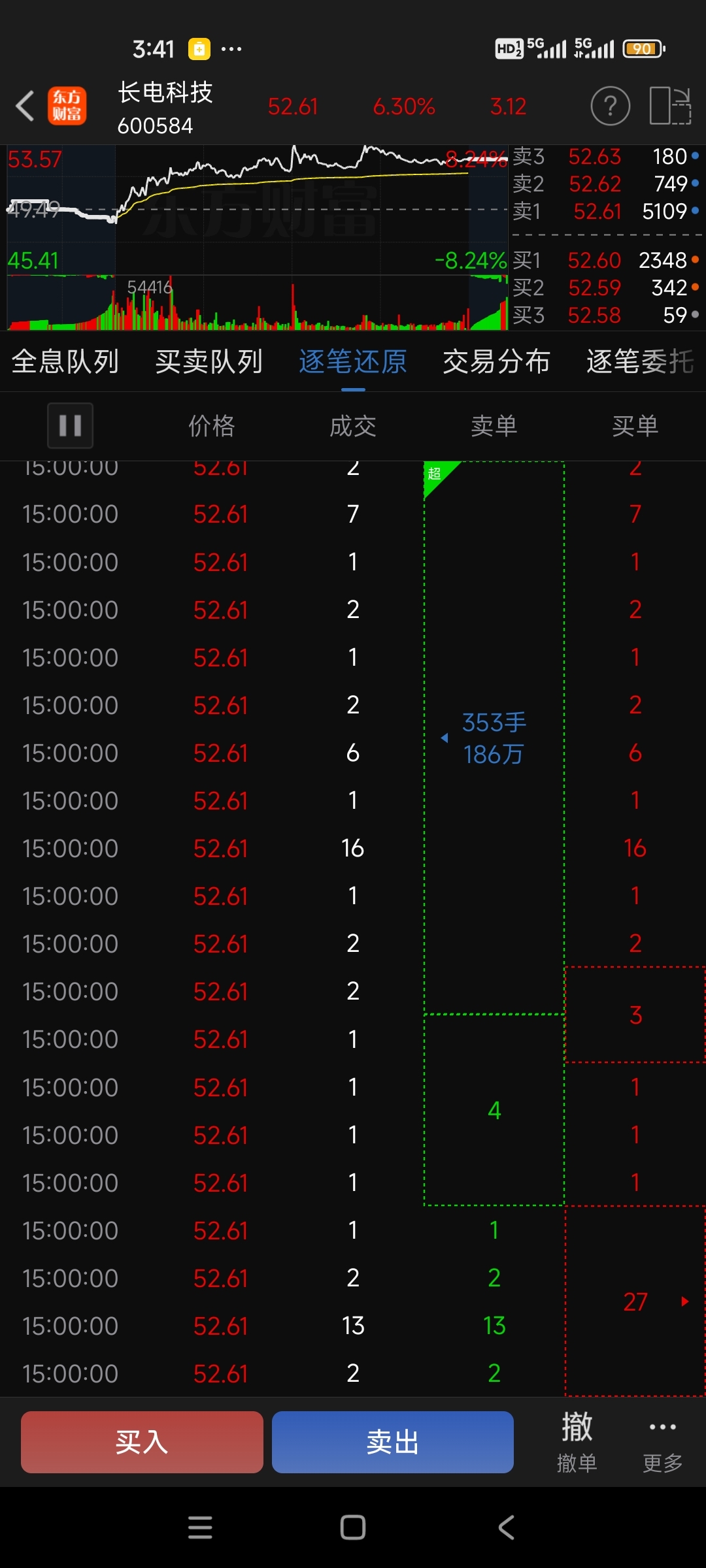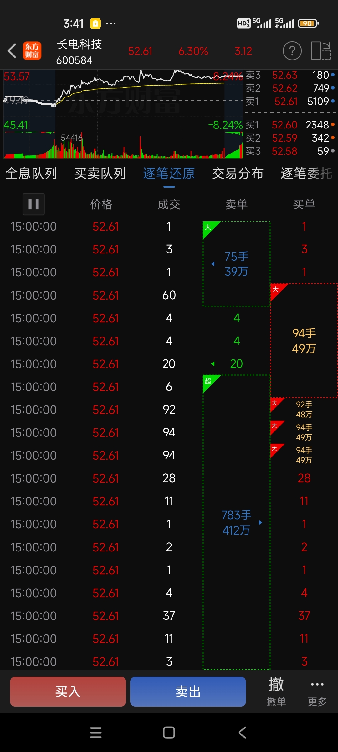 $长电科技(SH600584)$ 今天冲高回落见顶,尾盘卖给了散户