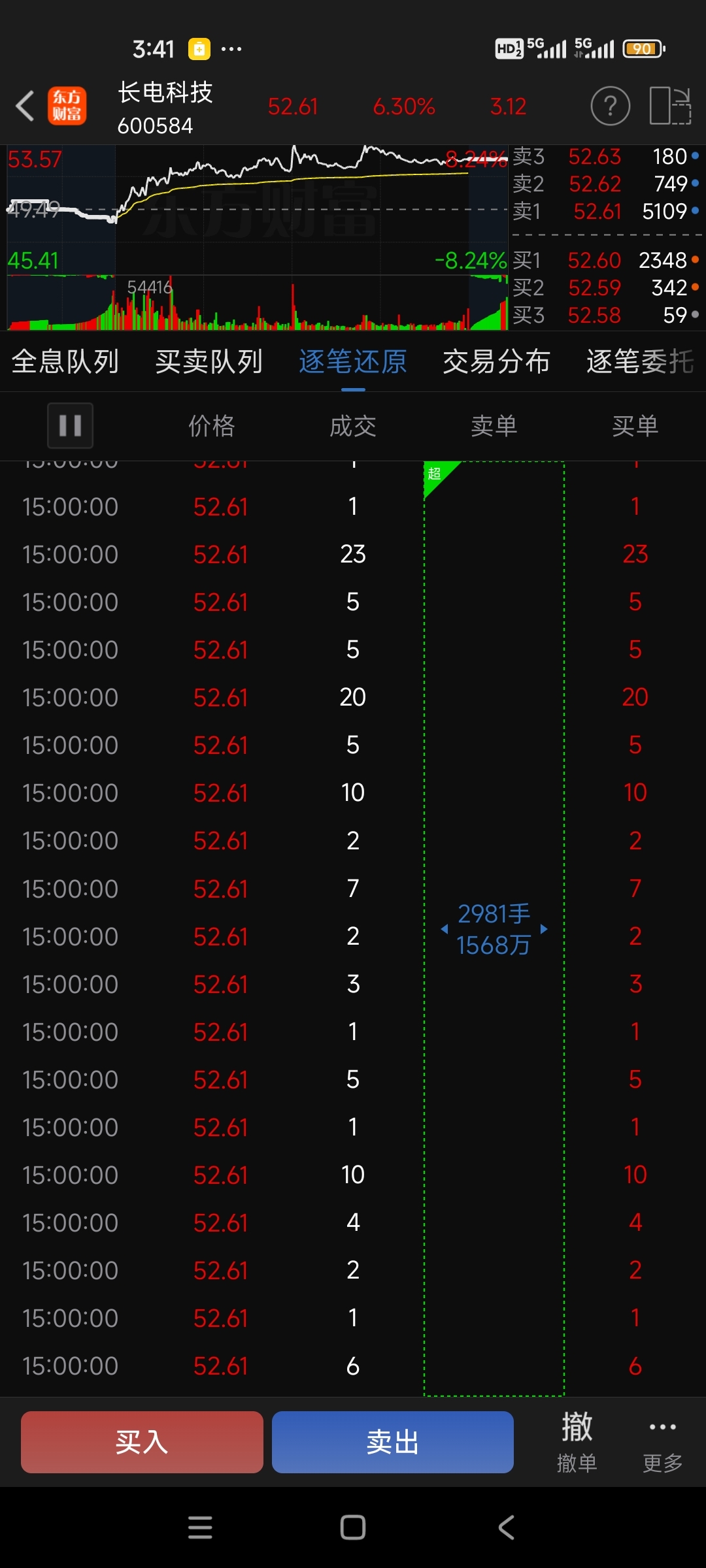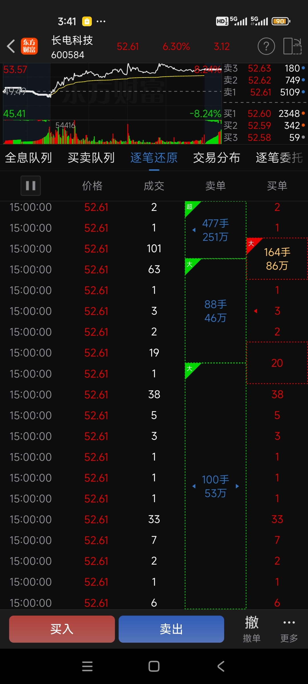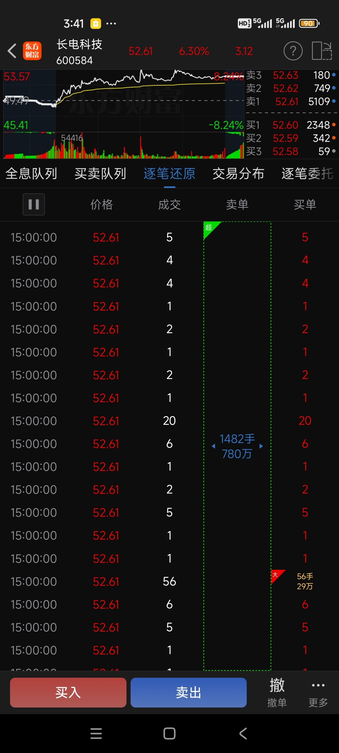 $长电科技(SH600584)$ 今天冲高回落见顶,尾盘卖给了散户