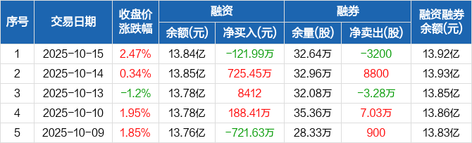 海螺水泥:融资净偿还121.99万元,融资余额13.84亿元(10-15)