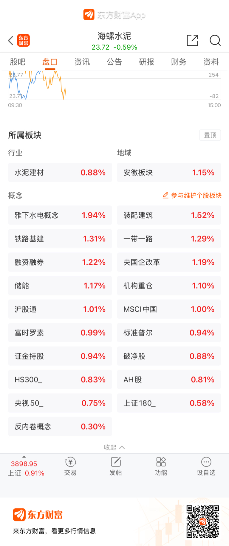 $海螺水泥(SH600585)$ 这就是龙头,所有的板块全红