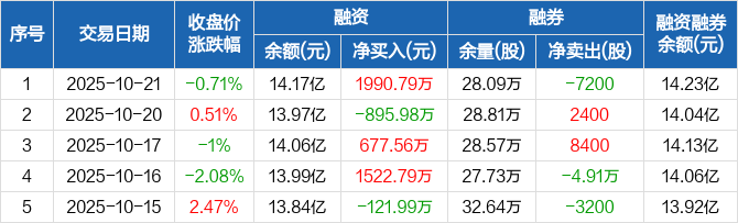 海螺水泥:融资净买入1990.79万元,融资余额14.17亿元(10-21)