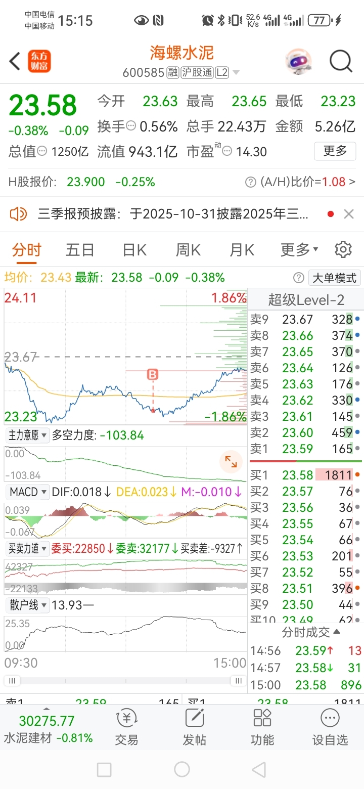 $海螺水泥(SH600585)$ 今天建一个底仓。