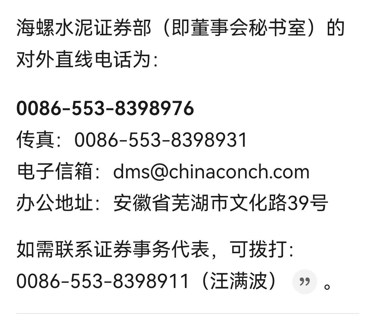 $海螺水泥(SH600585)$ 一起打电话问侯他们,能不能搞得好