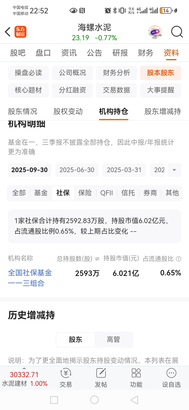 $海螺水泥(SH600585)$ 明天低开的话,就支援社保国家队400股。