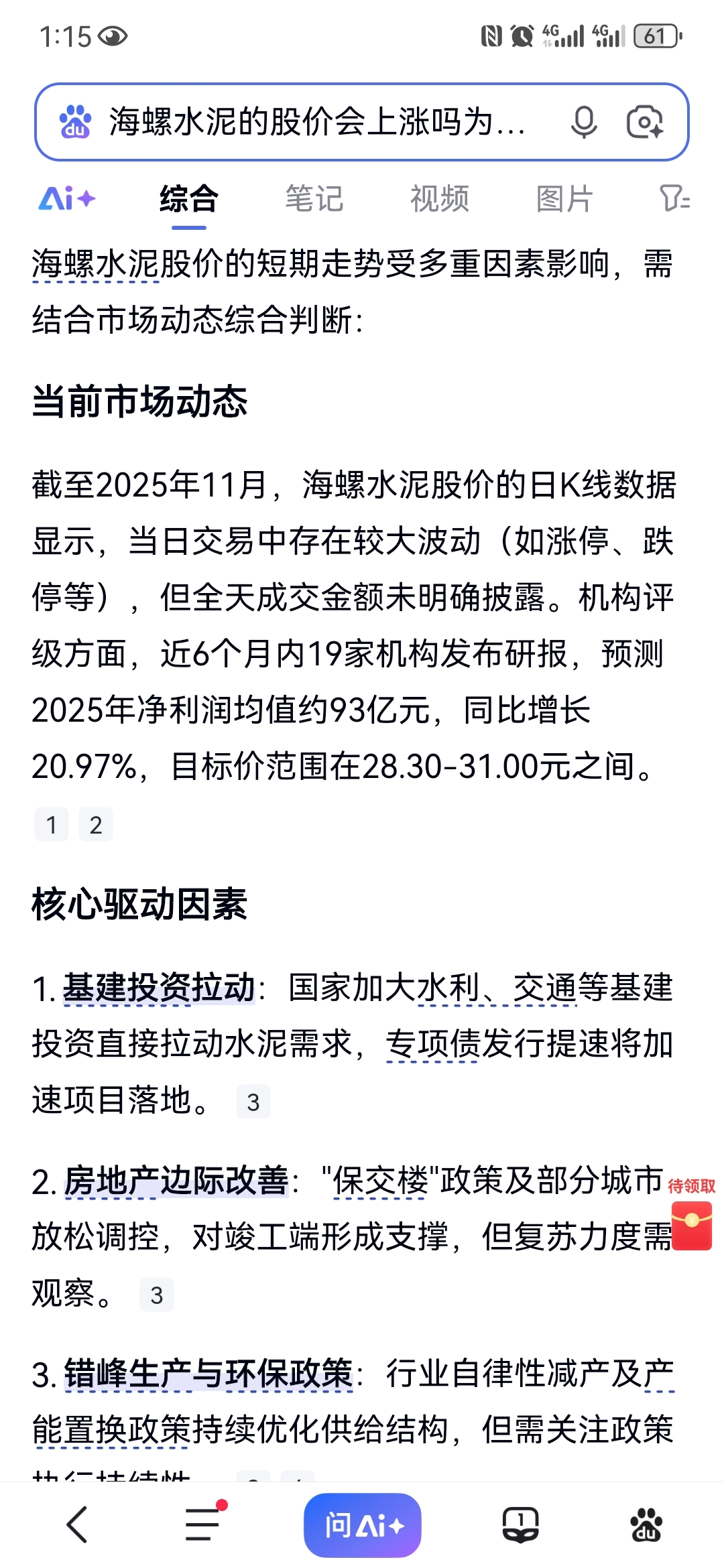 $海螺水泥(SH600585)$ 第四季度能盈利30个亿??等待明年开奖。