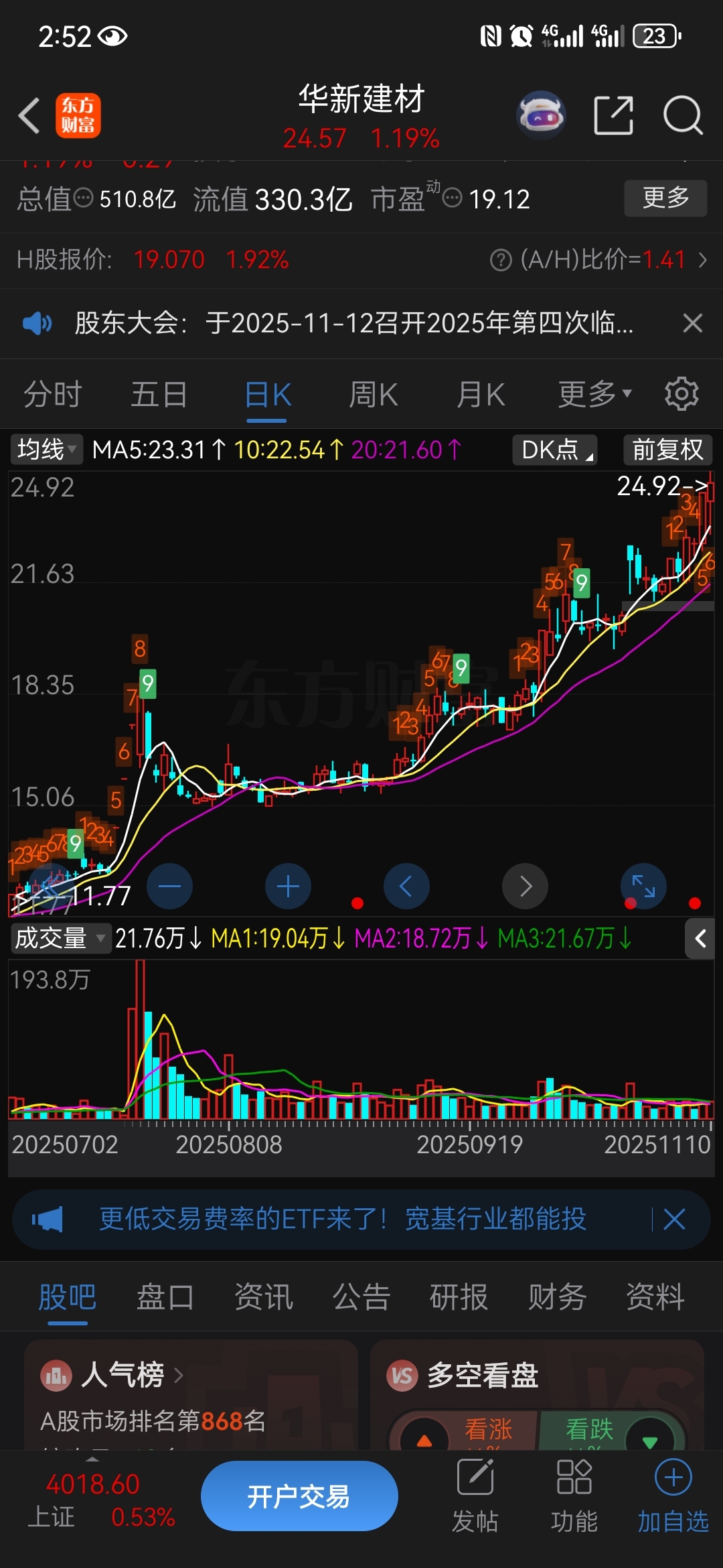 $海螺水泥(SH600585)$ 参考华新的走势,海螺要迎来一波上涨了。