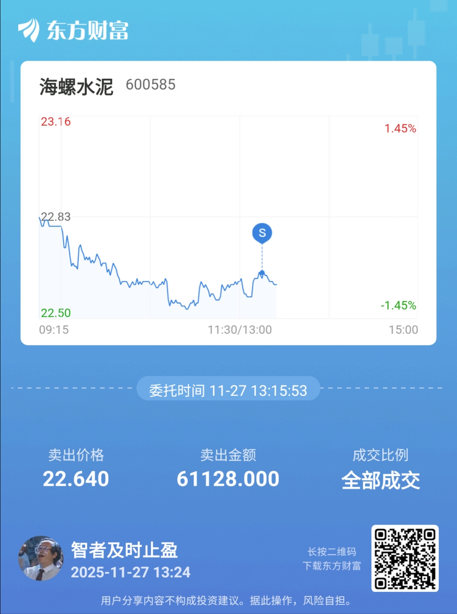 $海螺水泥(SH600585)$ 及时止损,资金拿去买巨人网络