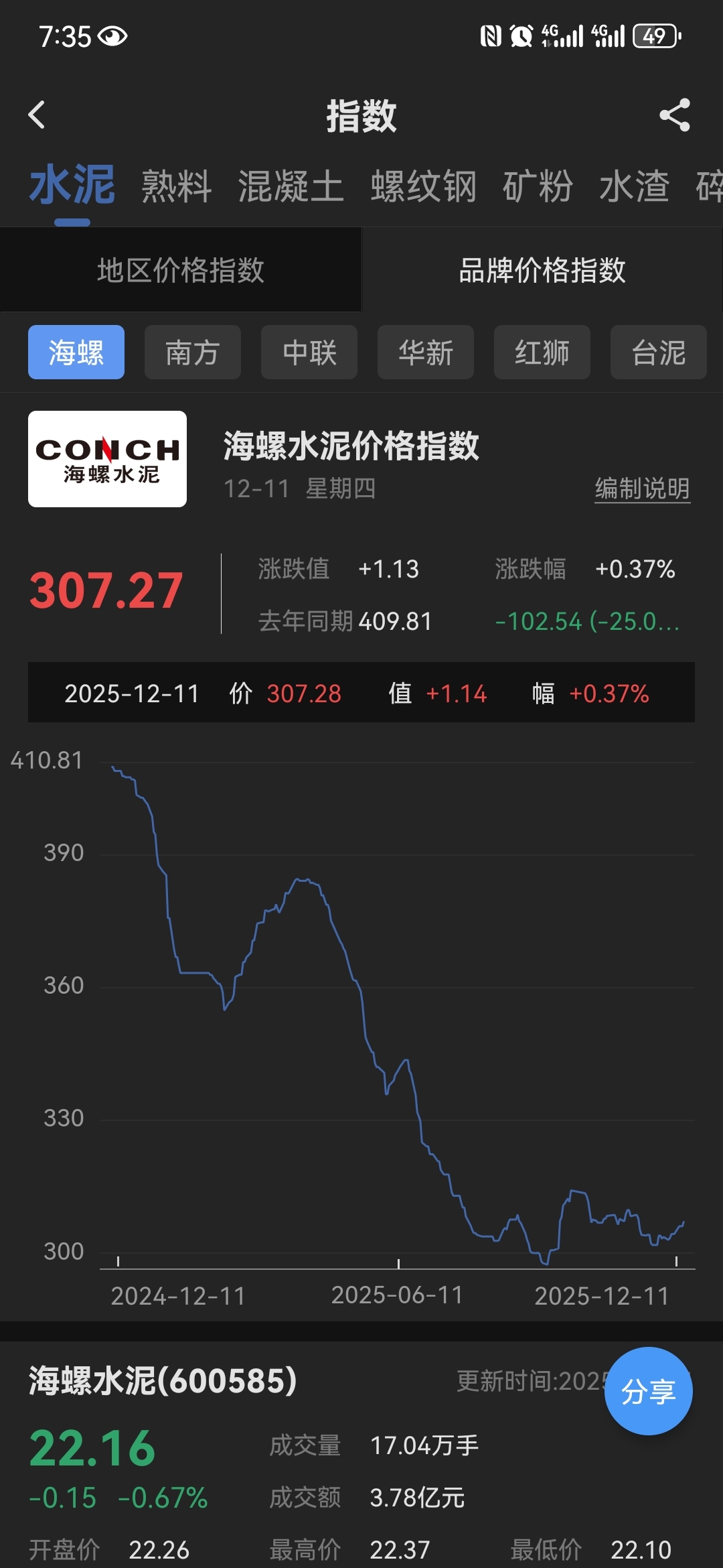 $海螺水泥(SH600585)$ 水泥和熟料价格触底反弹。