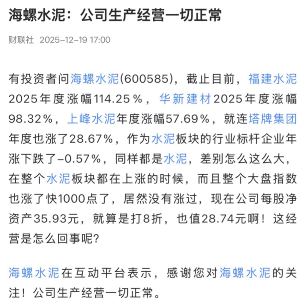 $海螺水泥(SH600585)$