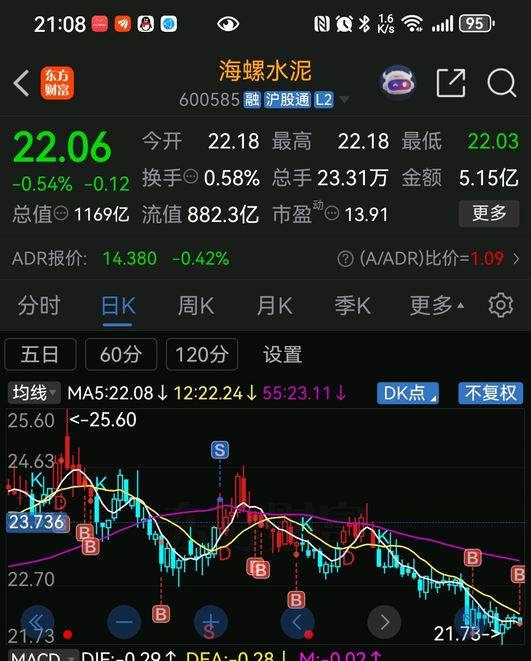 $海螺水泥(SH600585)$ 今天又买了一点,目前23.74的成本。今年解不了套啊!