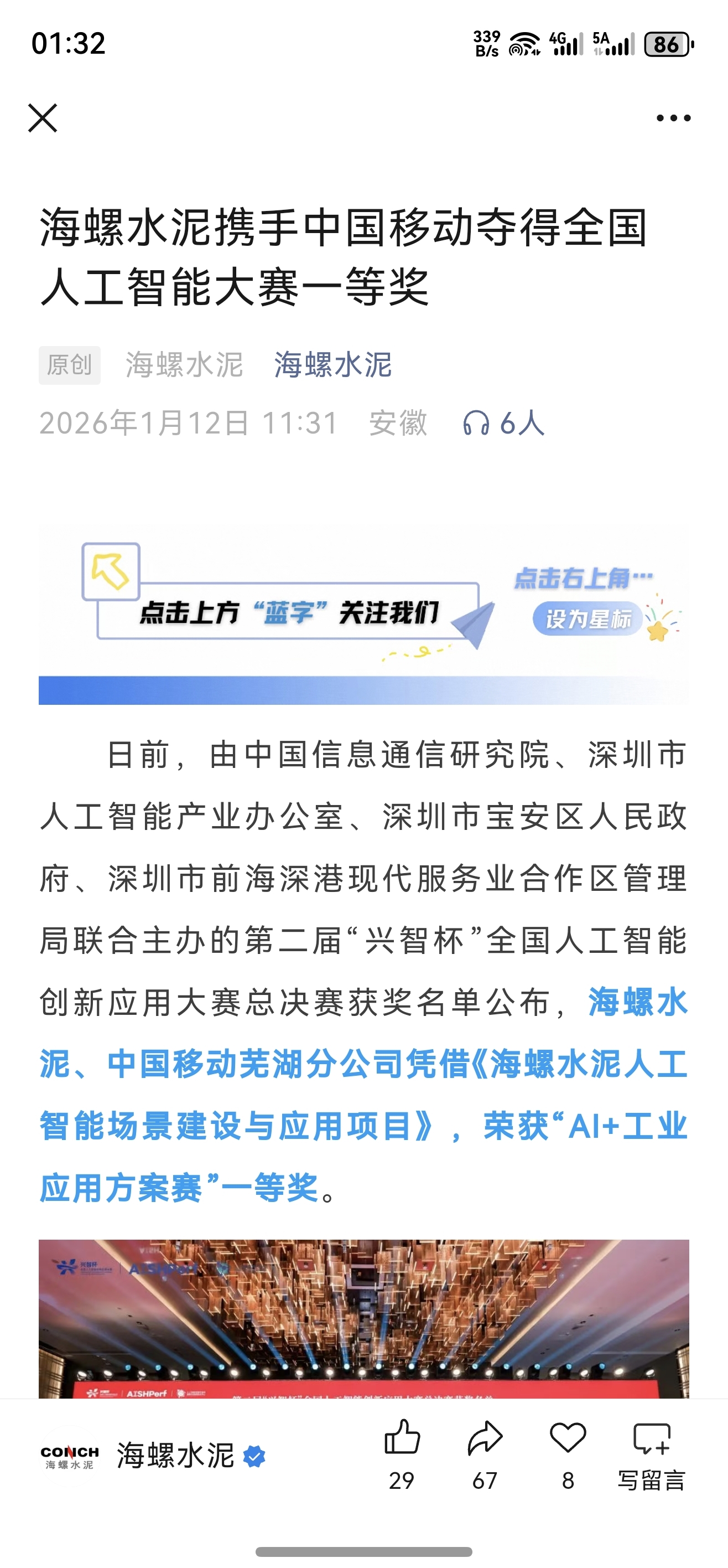 $海螺水泥(SH600585)$ 是不是可以加上AI人工智能概念了