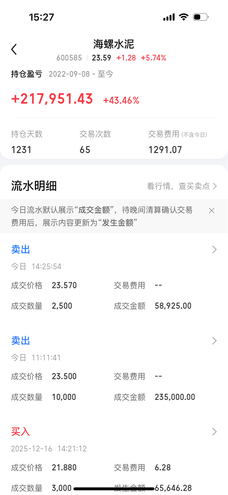 海螺水泥高抛低吸