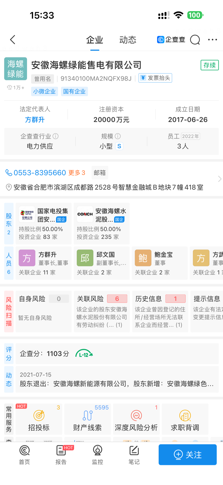 把安徽海螺绿能售电有限公司装进来了,进军电力行业了,难怪又有新韭菜了