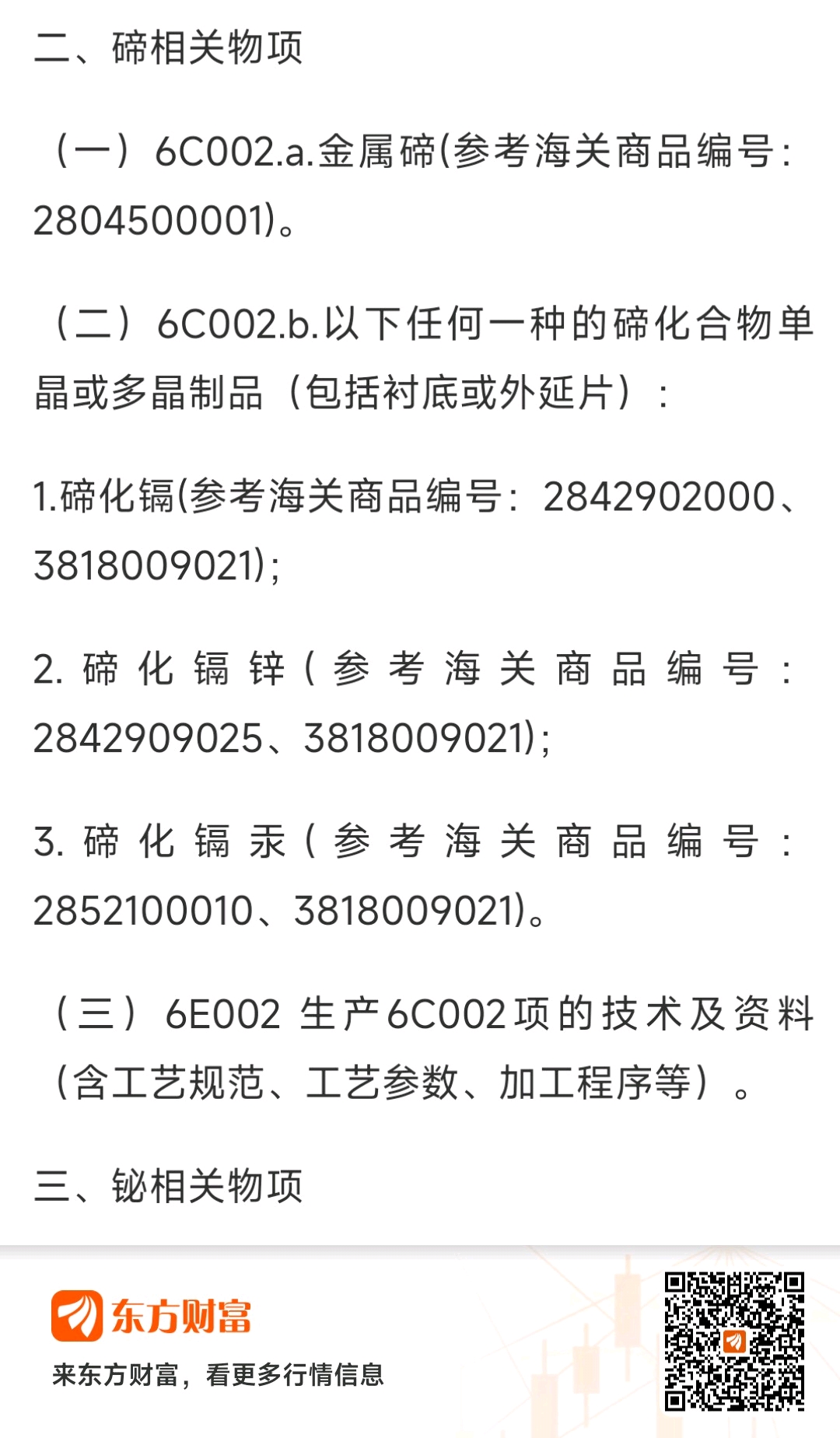 刚听收音机,听到一条关于,商务部对碲出口管制,查了一下,第一太阳能好像是专门搞碲