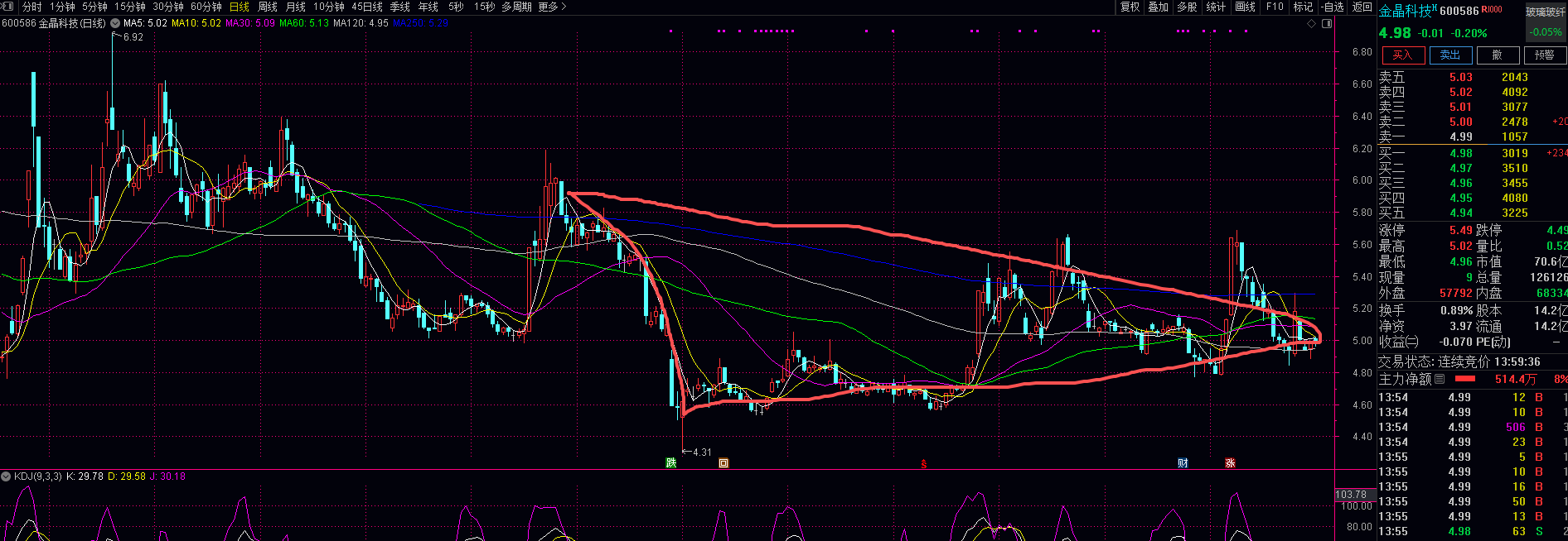 金晶科技这两天控盘控得不错,再控两天就差不多了。反正不需要大幅拉升或者大幅下跌,控在120天之上可以了。