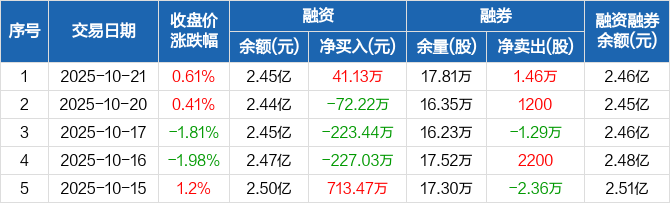 金晶科技:融资净买入41.13万元,融资余额2.45亿元(10-21)