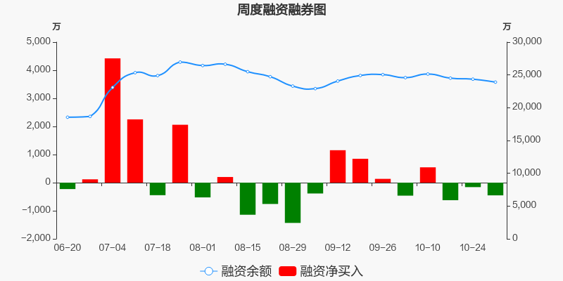 金晶科技本周(2025/10/27-2025/10/31)累计涨幅达6.49%,截至10月31日最新股价报收5.25元。从增量上来看,10月27日至10月31日融资买入交易规模7676.78万元,融资偿还规模8128.54万元,期内融资净偿还451.76万元。从存量上来看,截止11月2日,金晶科技融资融券余额2.4亿元,其中融资余额规模2.39亿元,融券余额规模105万元。