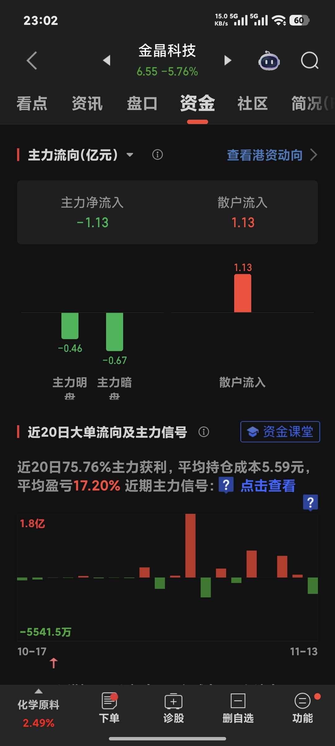 $金晶科技(SH600586)$ 今天主力流出1.13亿。今天己出了半仓,明天不止跌,继续出尽