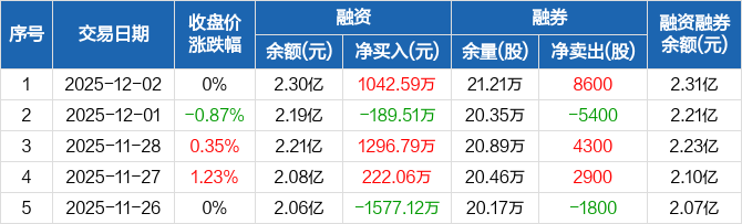 金晶科技:融资净买入1042.59万元,融资余额2.3亿元(12-02)
