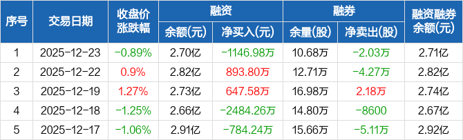 金晶科技:融资净偿还1146.98万元,融资余额2.7亿元(12-23)