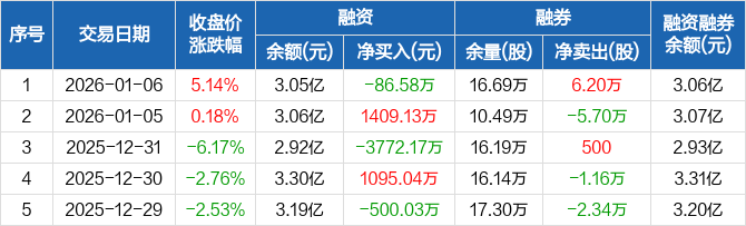 金晶科技:融资净偿还86.58万元,融资余额3.05亿元(01-06)