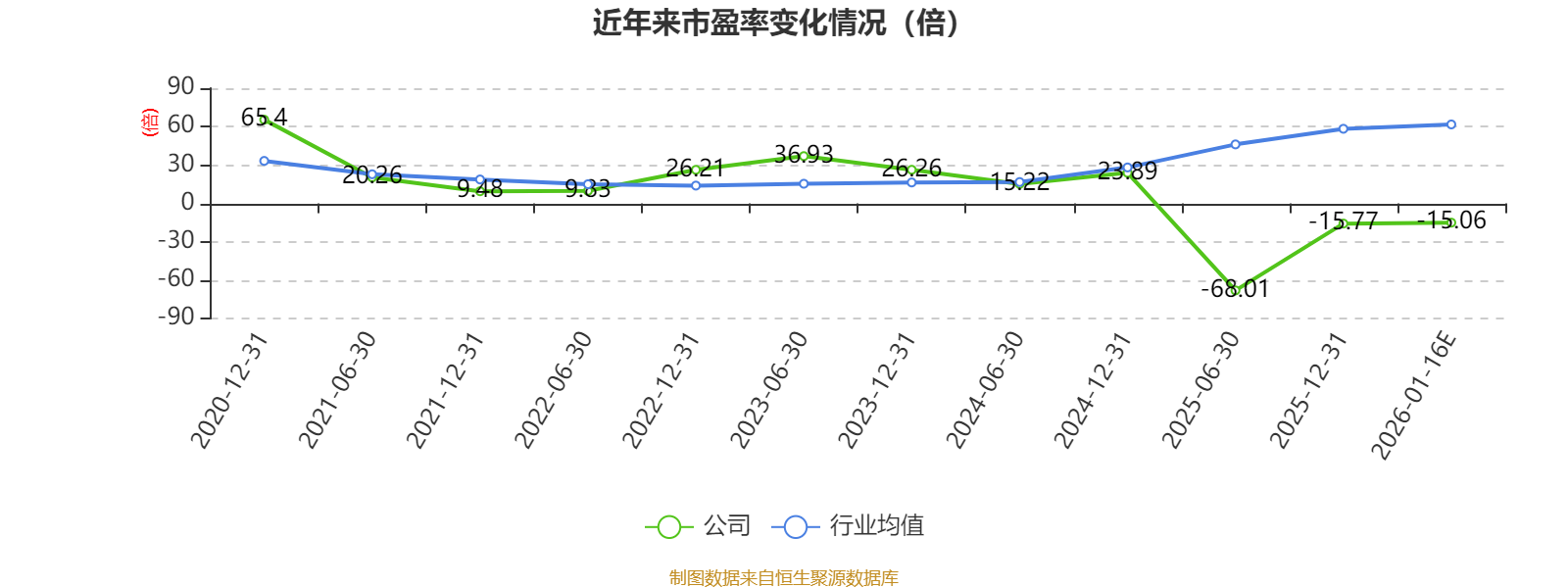 中证智能财讯金晶科技(600586)1月16日晚间披露2025年度业绩预告,预计2025年归母净利润亏损5.6亿元,上年同期盈利6047.62万元;扣非净利润亏损5.8亿元,上年同期盈利3536.15万元。以1月16日收盘价计算,金晶科技目前市盈率(TTM)约为-15.06倍,市净率(LF)约1.54倍,市销率(TTM)约1.74倍。