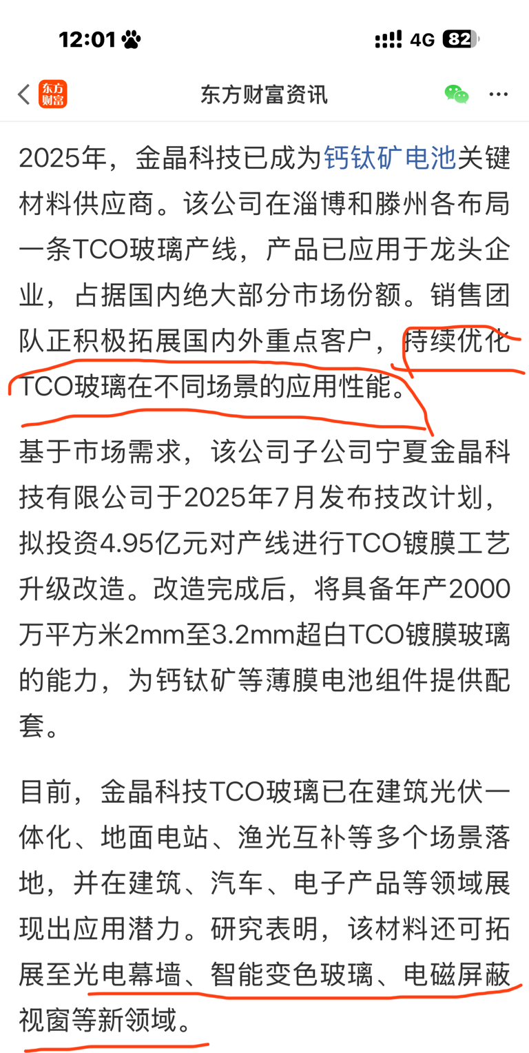 $金晶科技(SH600586)$ TCO导电玻璃薄膜2mm~3.2mm,之前长时间被日本,德国企业垄断,金晶突破后加速和国内头部大厂合作替换国外控制的产能,加速HjT和钙钛矿电池自主可控在各种新场景的前瞻性应用开发,未来美国第一太阳能如果能获得马斯克的钙钛矿电池的订单对于金晶马来西亚工厂来说有先发优势