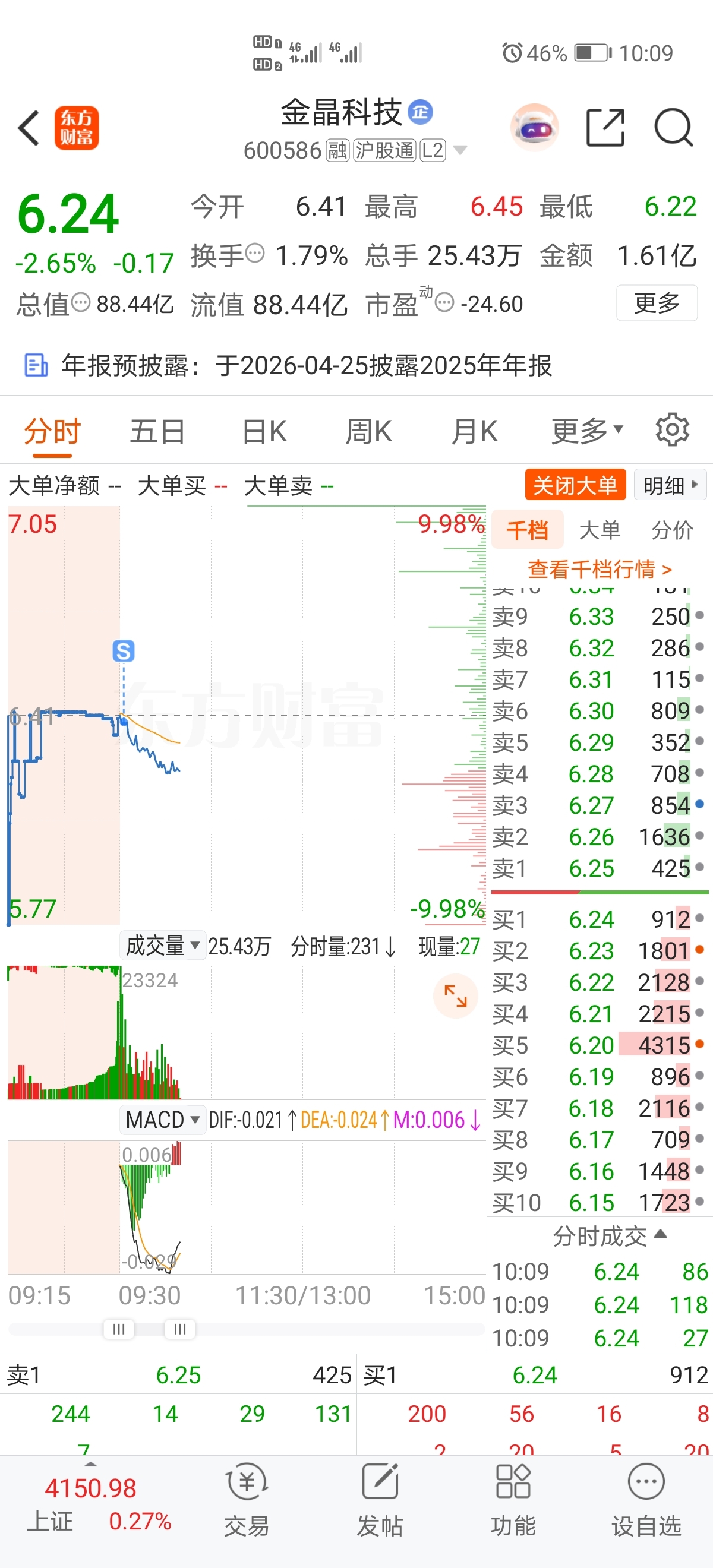 $金晶科技(SH600586)$ 开盘不及预期,续弱,错了就认,割肉离场