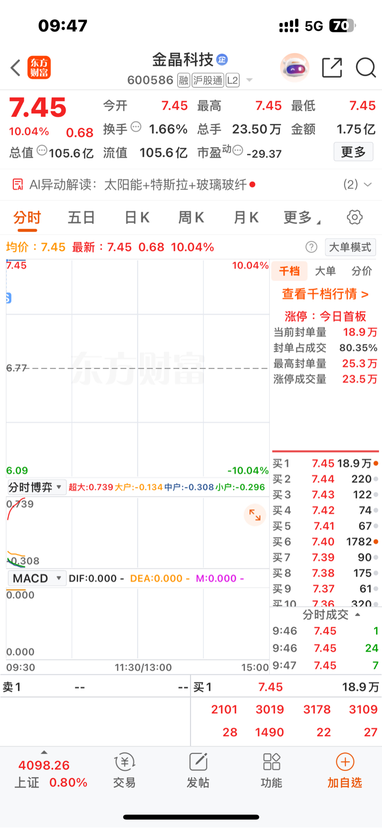 $金晶科技(SH600586)$ 周五6.85进的,我知道我走的你们要笑我还有大肉,但是涨停开盘我已经满足了。祝各位车上发财