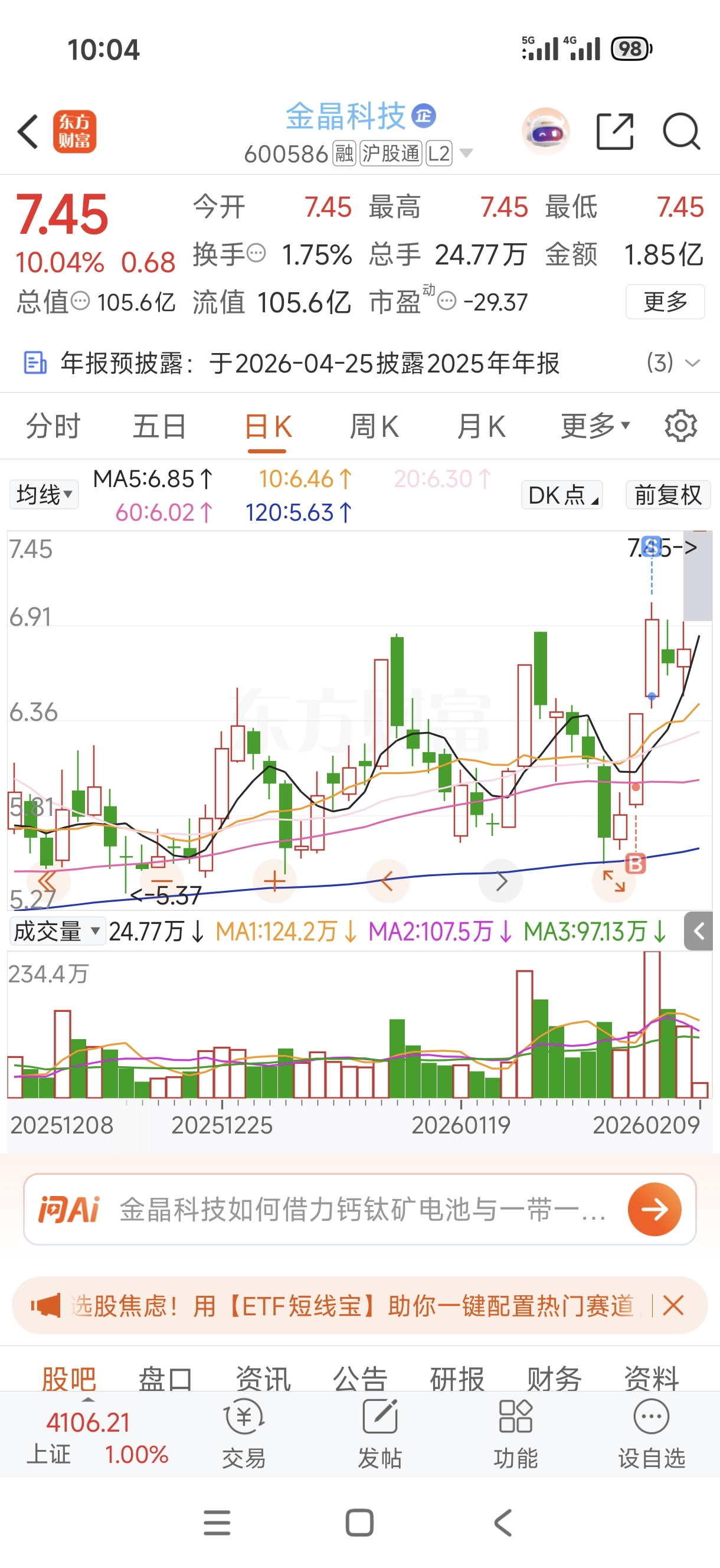 $金晶科技(SH600586)$ 牛的,祝大家发财